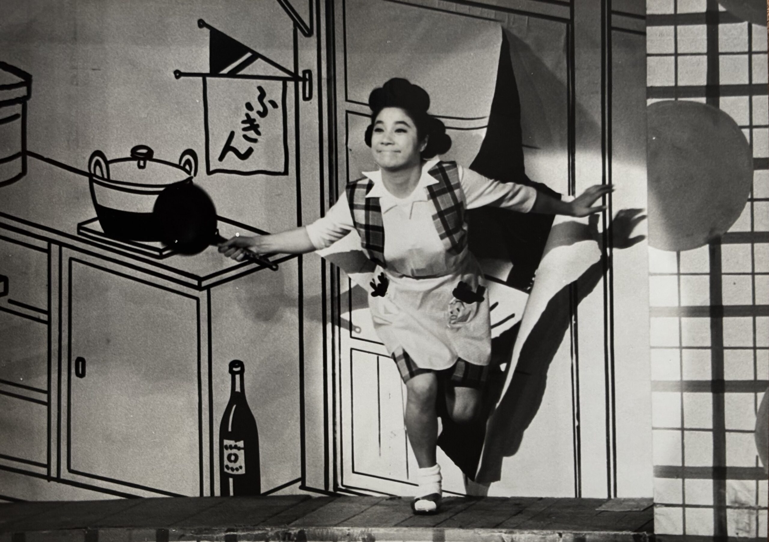 長谷川町子の漫画「サザエさん」の連載が福岡県の地元紙「夕刊フクニチ」で始まったのは戦後まもない1946年のこと。現在も放送中のアニメ作品で親しまれているが、メディア化は実写版が先で、1948年のマキノ映画『サザエさん 七転八起の巻』が最初の映画化作品となった。主演は宝塚歌劇団出身の東屋トン子で1950年に続篇も作られている。その後、NHKとニッポン放送でのラジオドラマ化、TBSでのテレビドラマ化を経て、1956年に再び映画化された際に江利チエミが主役に抜擢されて当たり役となったのだった。1965年からはテレビドラマ版がスタート、翌年には舞台化もされて、実写版サザエさんといえば江利チエミをおいてほかにいないという時期が長く続くことになる。